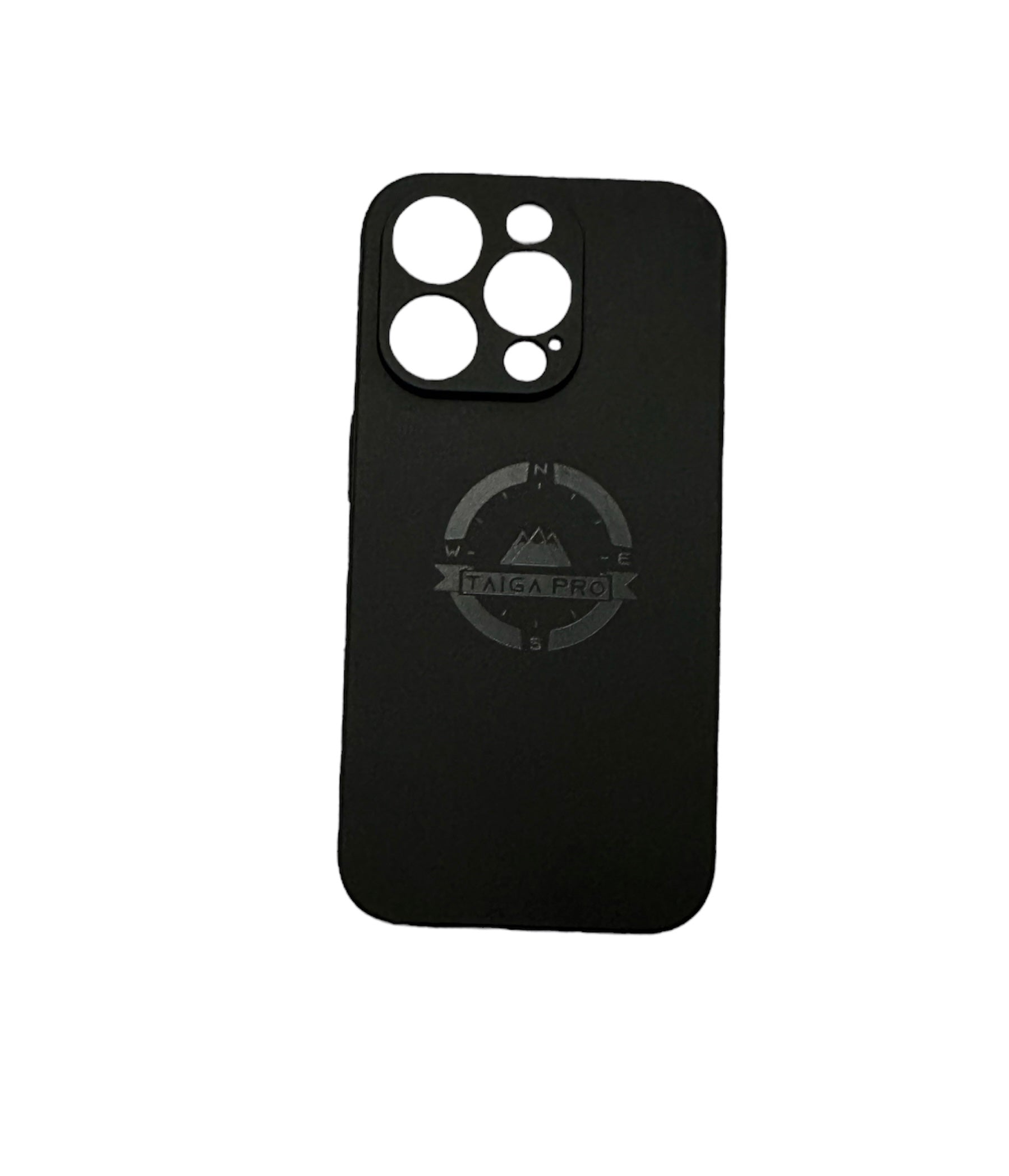 A flexible and durable iPhone case with the Taiga Pro logo laser engraved on the back. This case is made from silicone, with a matte finish.