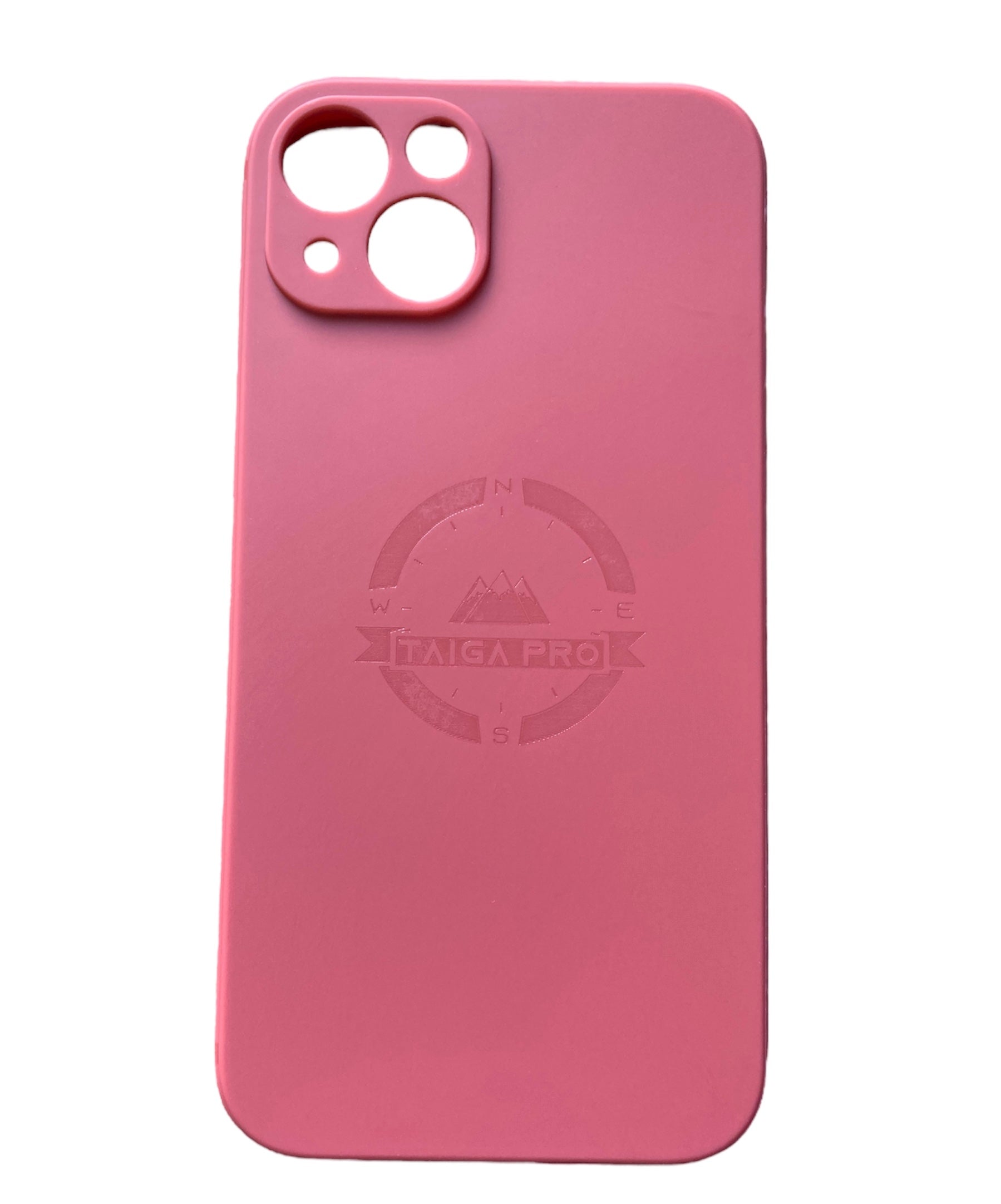 A flexible and durable light maroon iPhone case with the Taiga Pro logo laser engraved on the back. This case is made from silicone, with a matte finish.