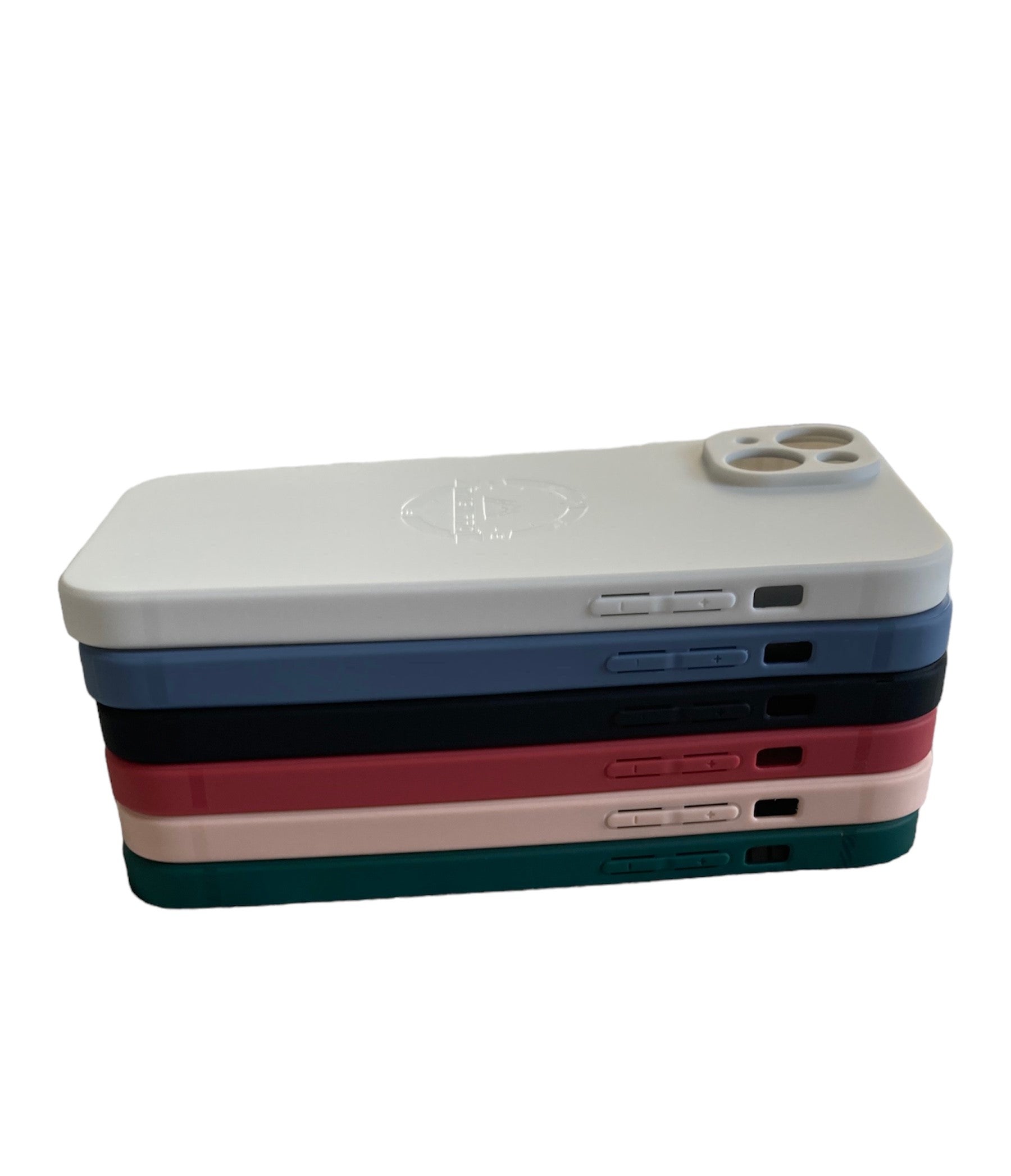 A flexible and durable white iPhone case with the Taiga Pro logo laser engraved on the back. This case is made from silicone, with a matte finish.